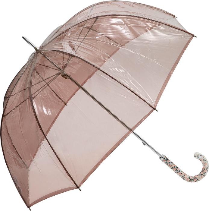 Paraguas Bisetti transparente marrón claro con forma de cúpula.